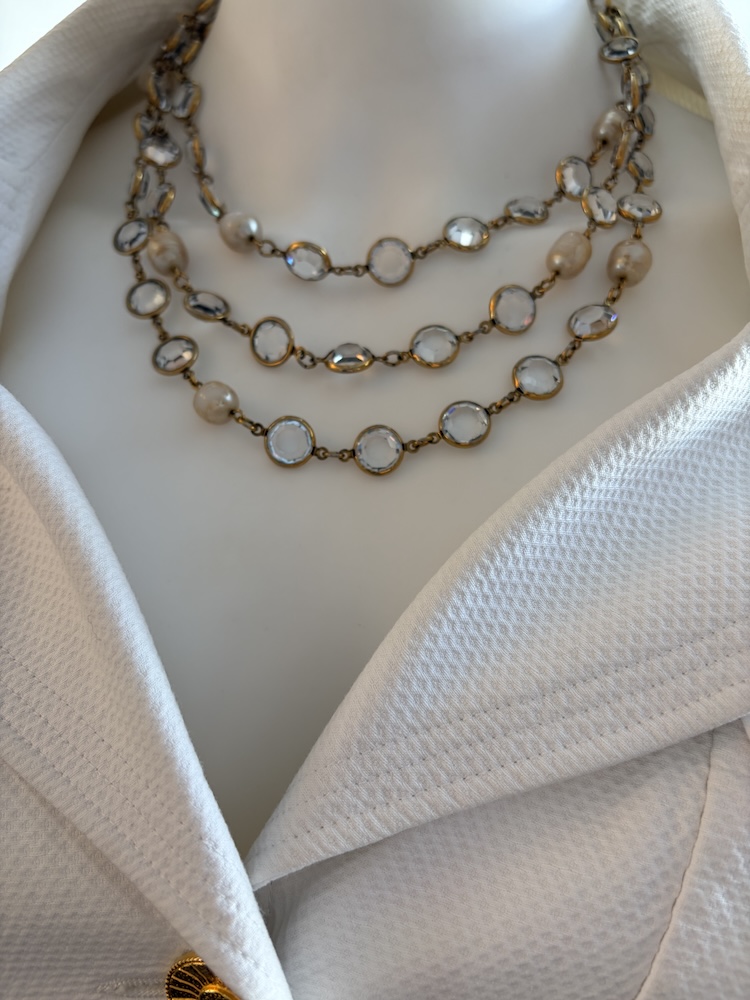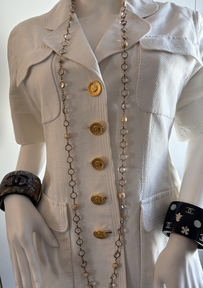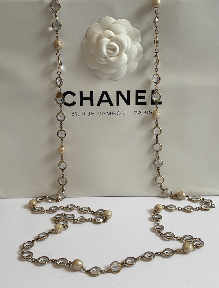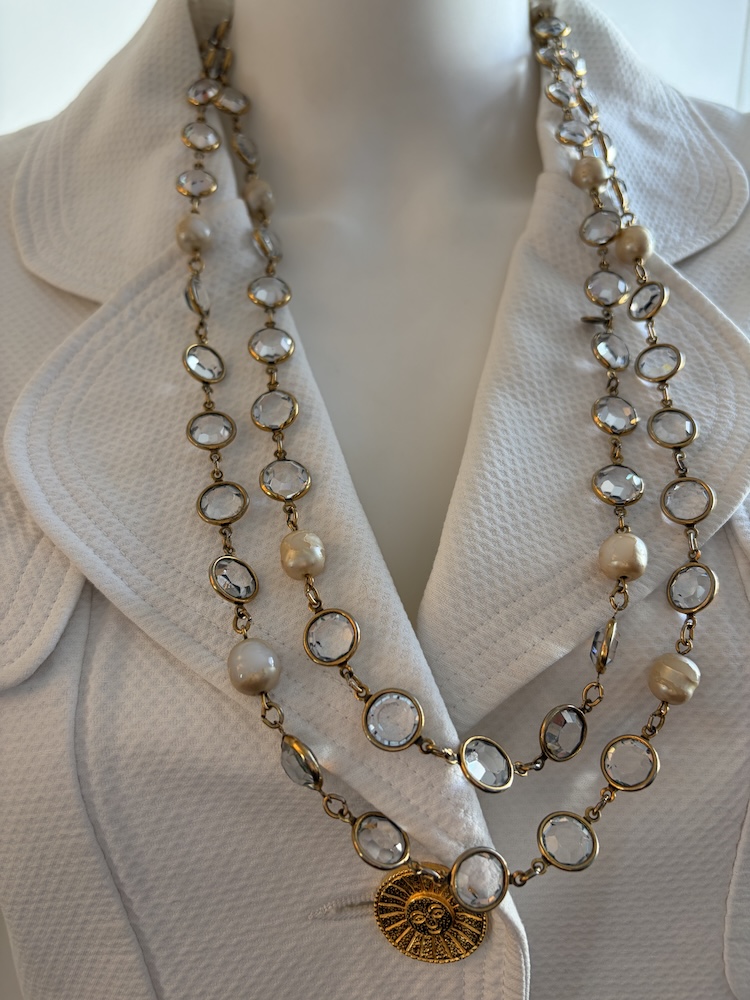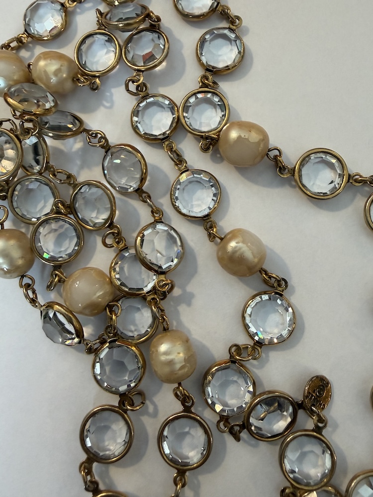 1981 CHANEL By Robert Goossens Vintage Long Sautoir Crystal & Pearl Byzantine Necklace