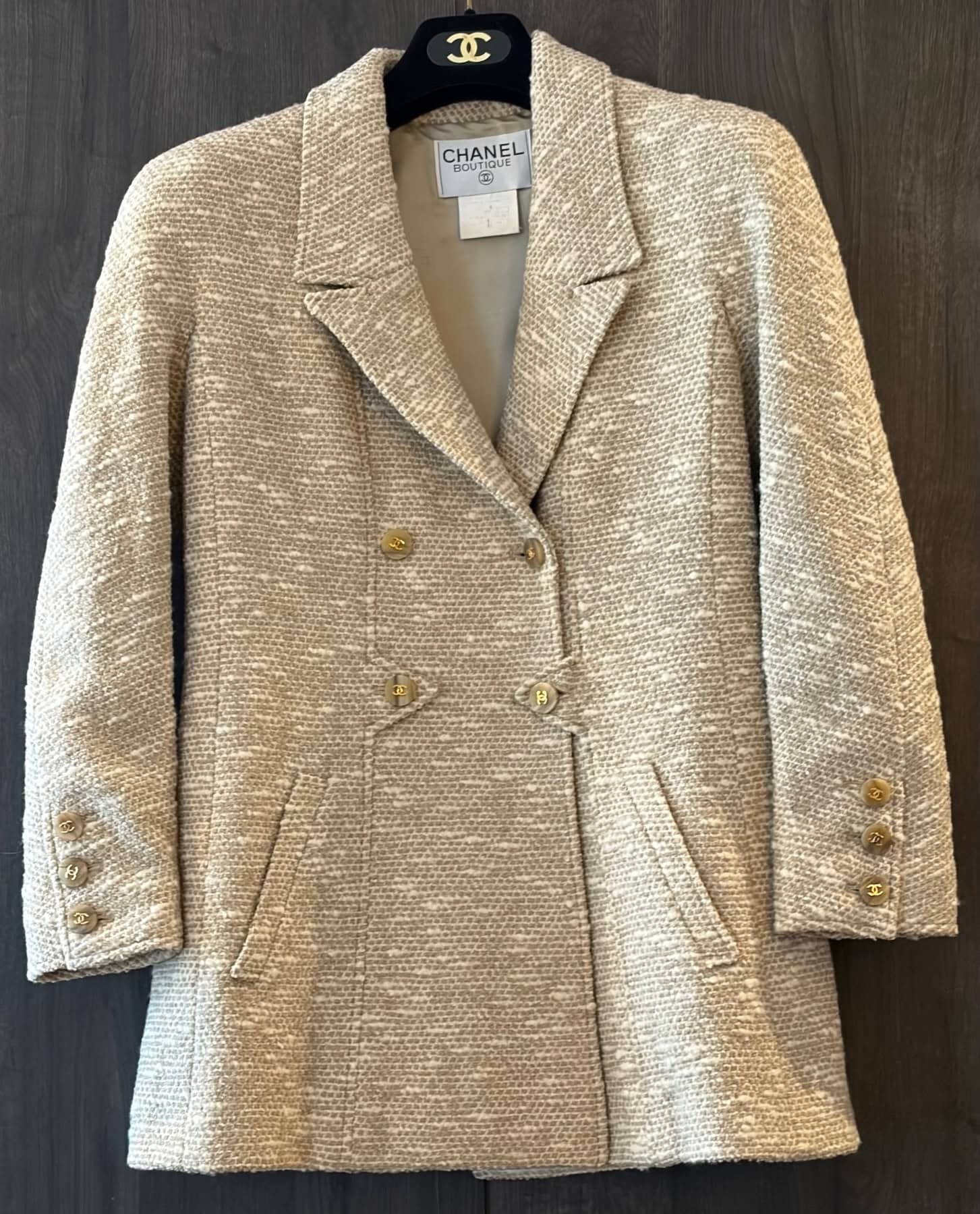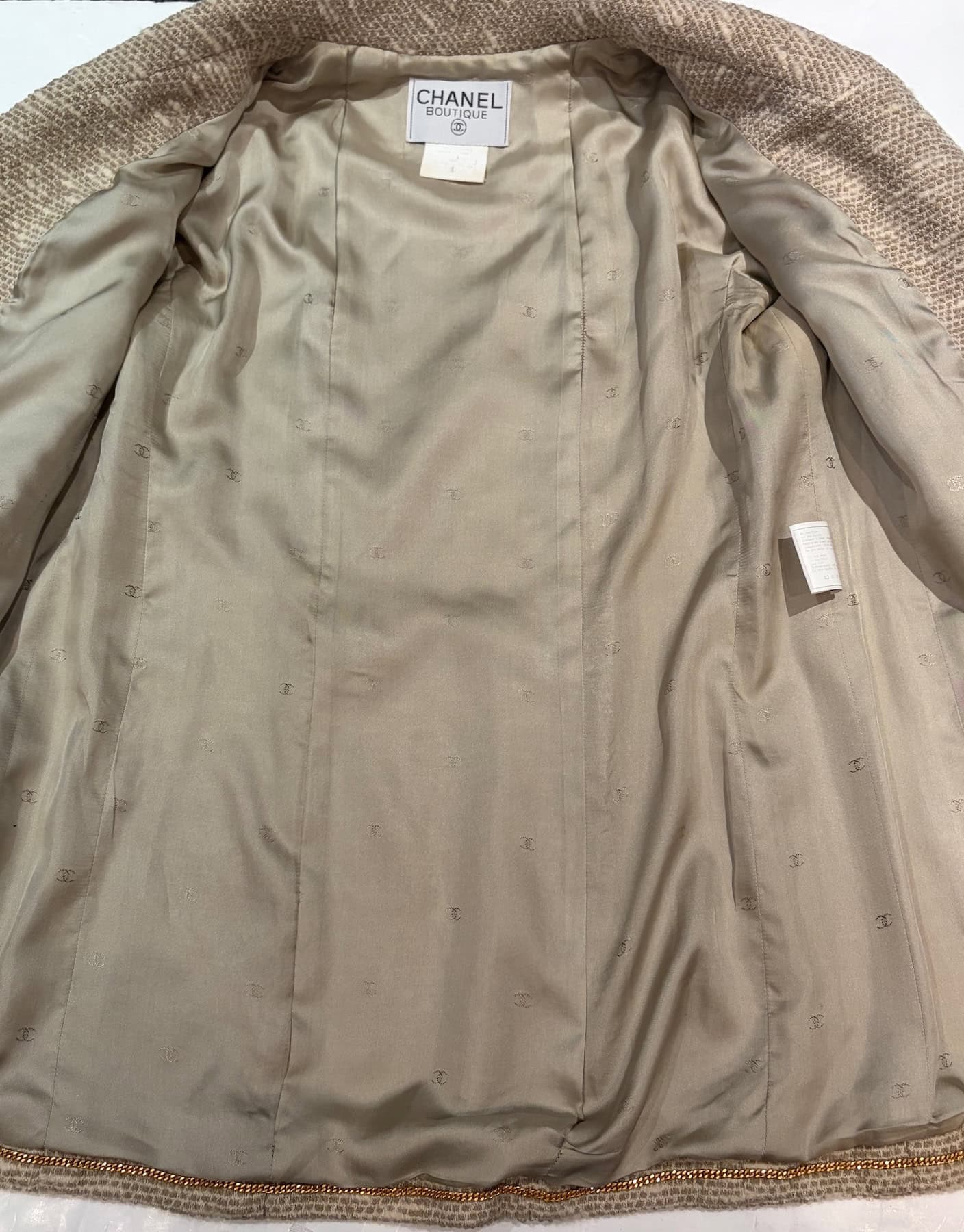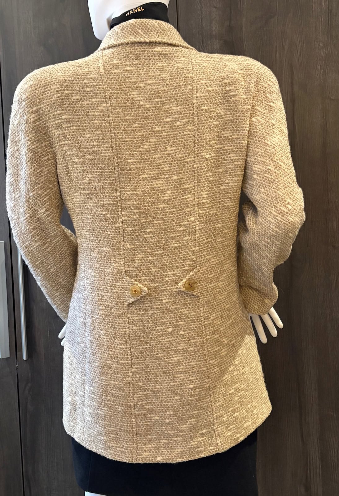 CHANEL By Karl Lagerfeld Vintage Tweed Boucle Cream CC Logo Jacket Fall 1996