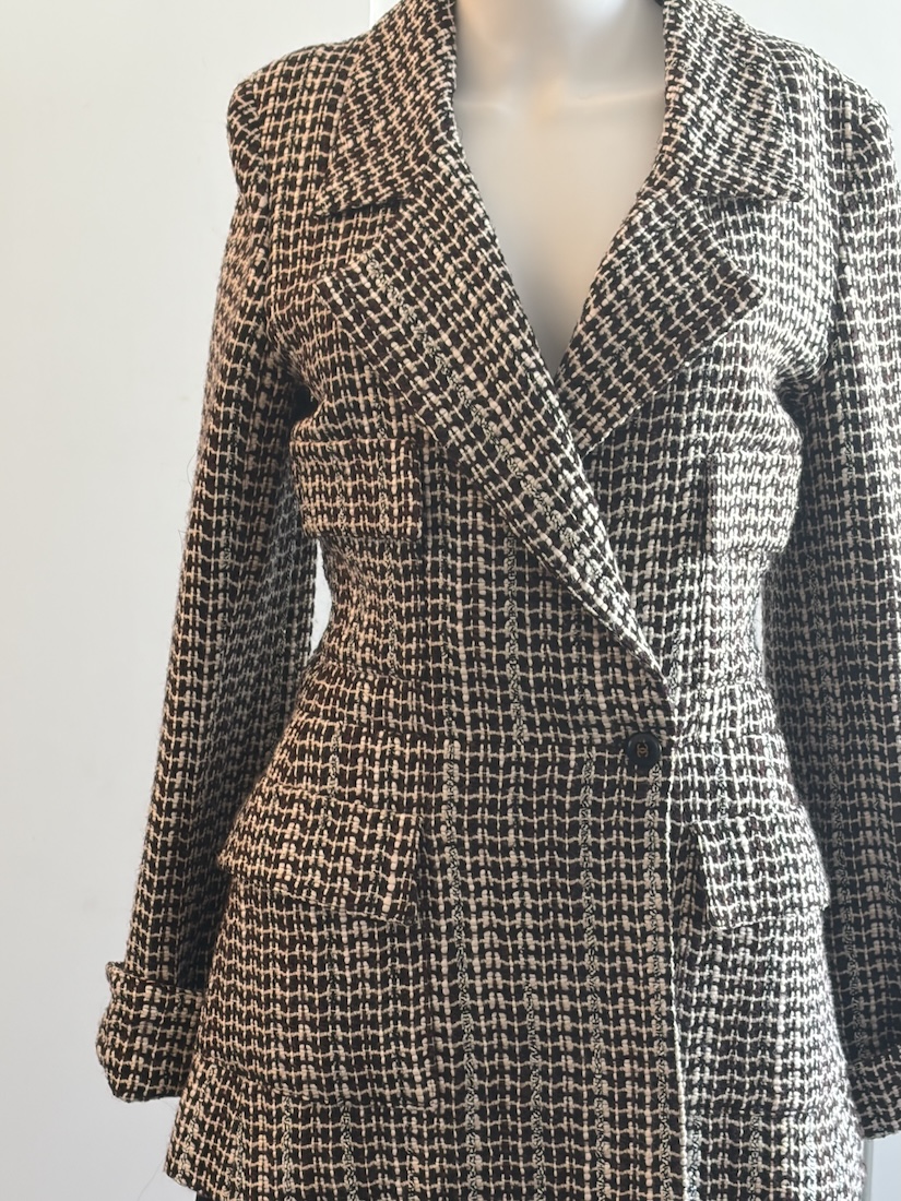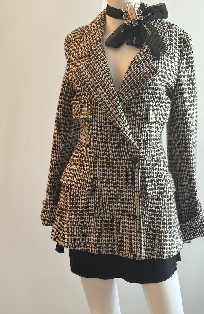 CHANEL Tweed Single Breasted CC Logo Button Notched Collar Jacket 2001