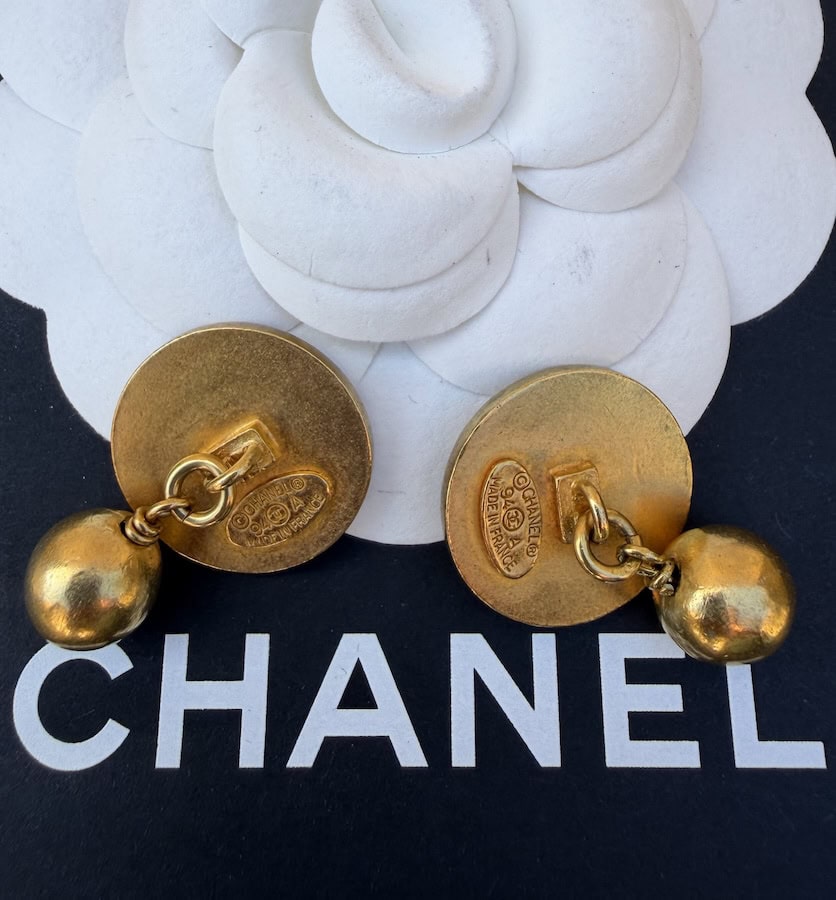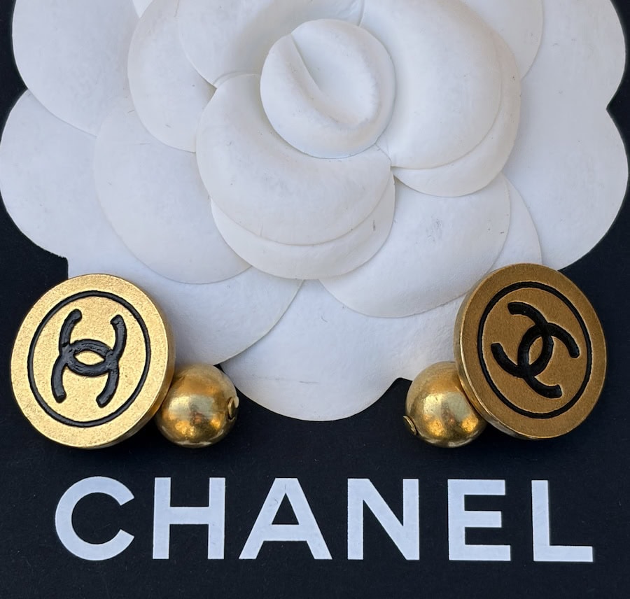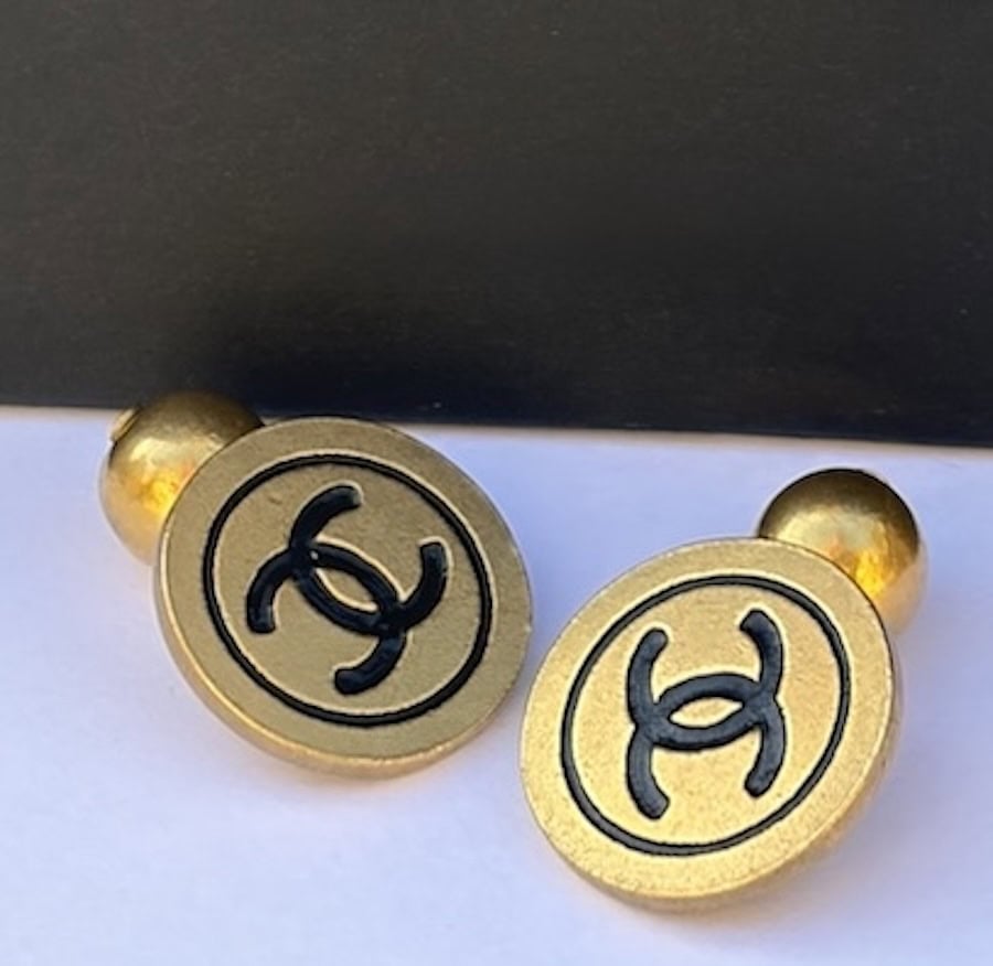 CHANEL Vintage CC Logo Round Disk Gold and Black Cufflinks Unisex 1994
