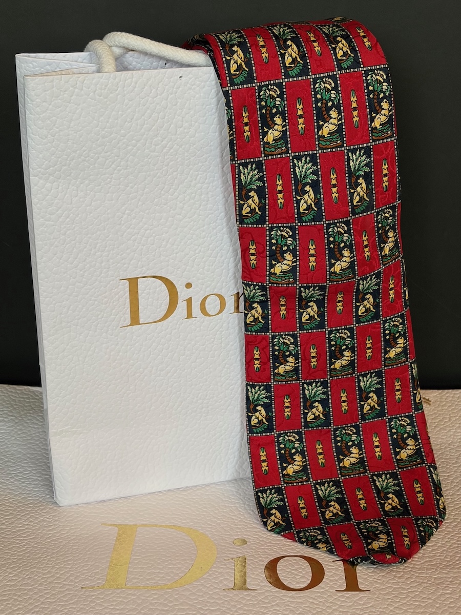 CHRISTIAN DIOR MONSIEUR Vintage Tie LION-FELINE Red Blue Multi C.1980s