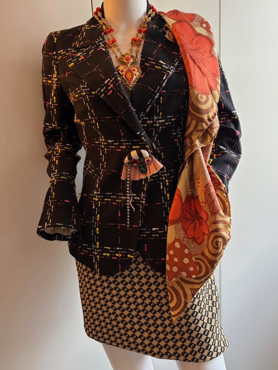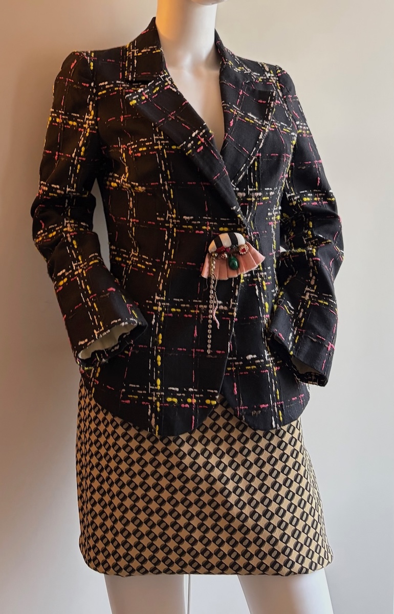 CHRISTIAN LACROIX BAZAR Vintage Jacket Black Wool Multi Checked-Tartan 1991-1992