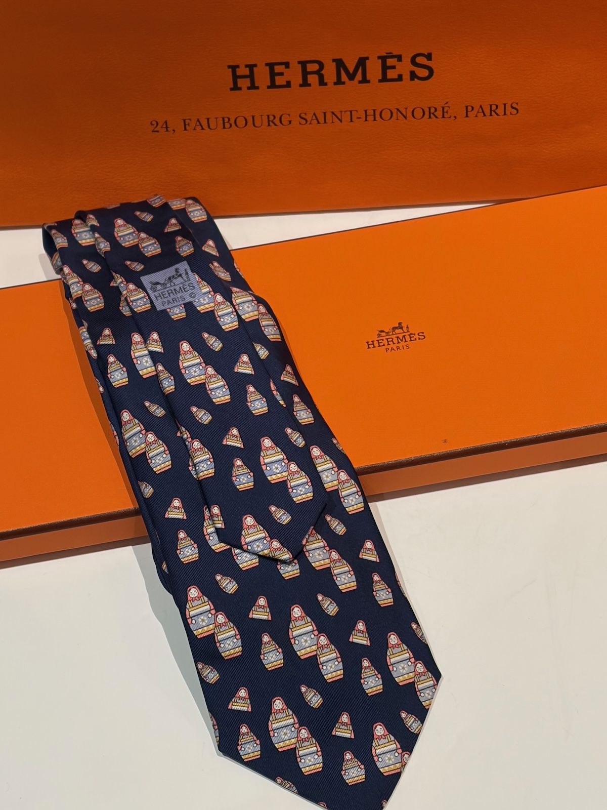 HERMÈS Vintage Tie ‘Poupées Russes’ Matryoshka RUSSIAN DOLLS Navy & Multi Collector W/Box