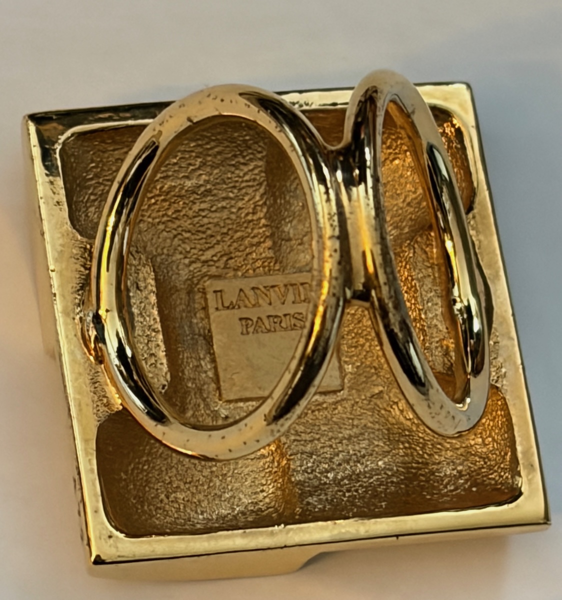 LANVIN PARIS Vintage Scarf Ring Geometric Square Gold Tone C.1970s-1980s