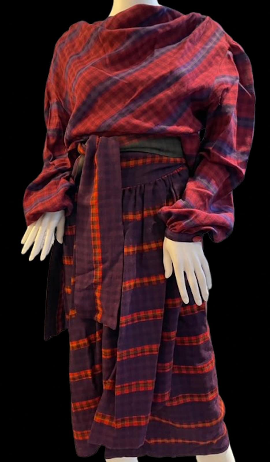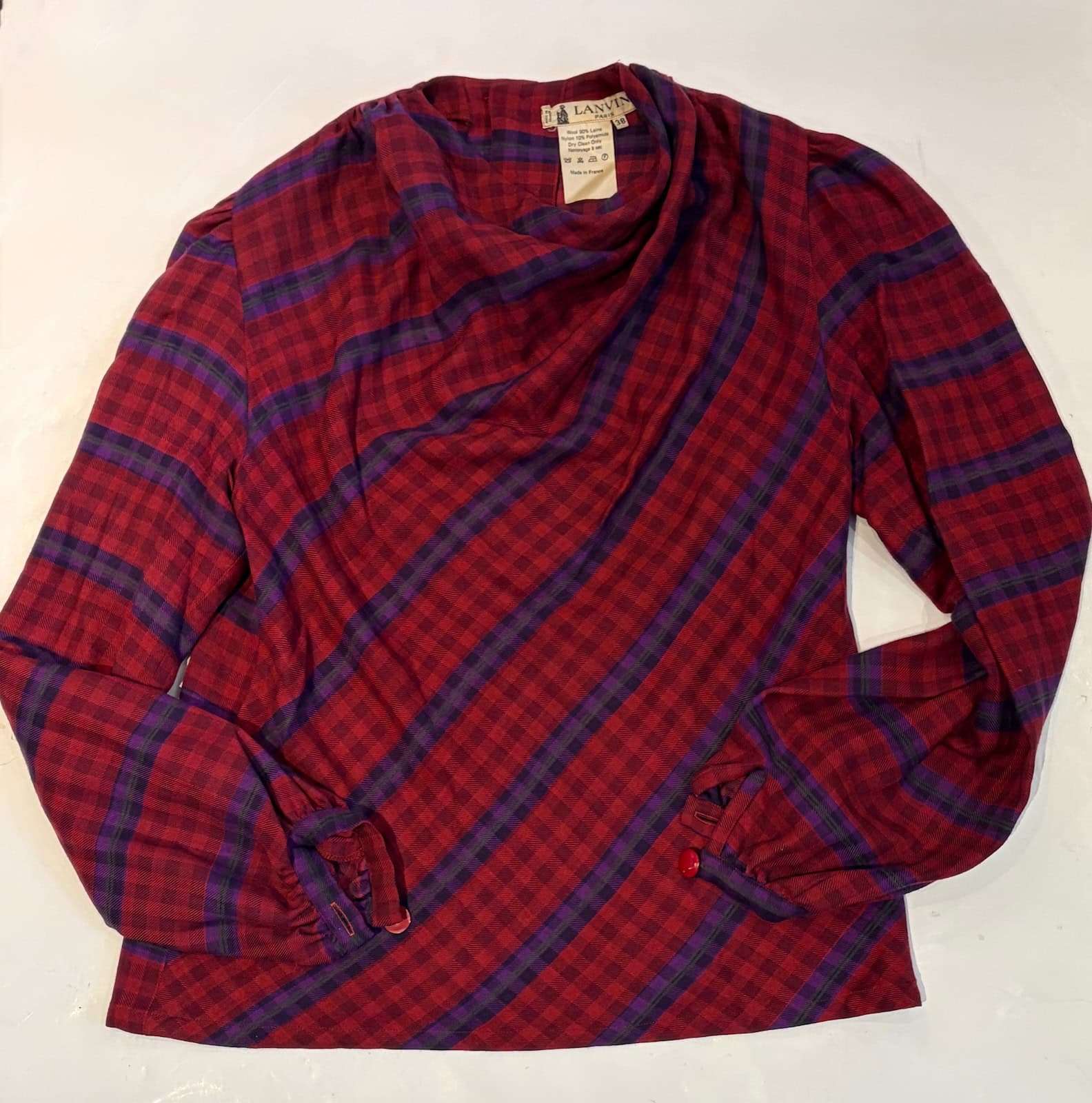 LANVIN Vintage Tartan Maxi Waistband Skirt and Puffed Top Two Piece Set C.1970