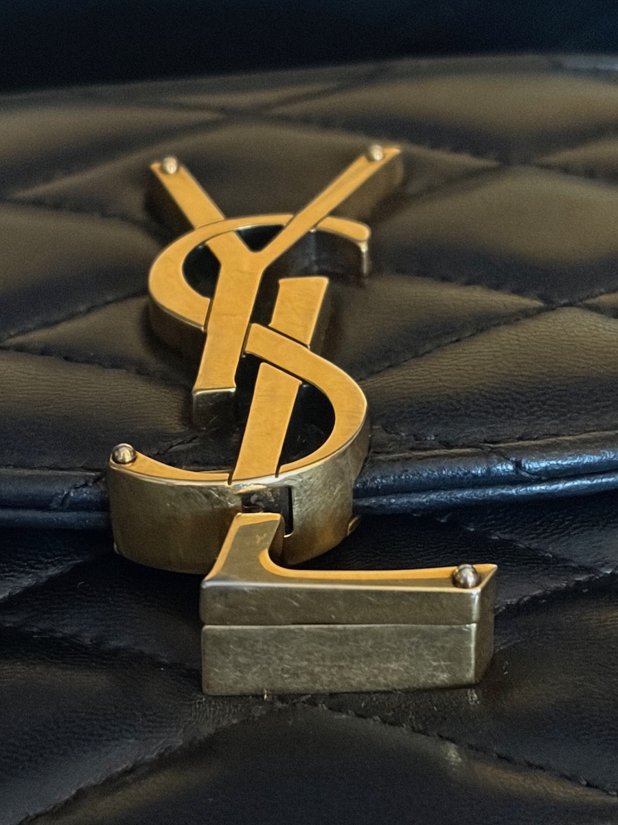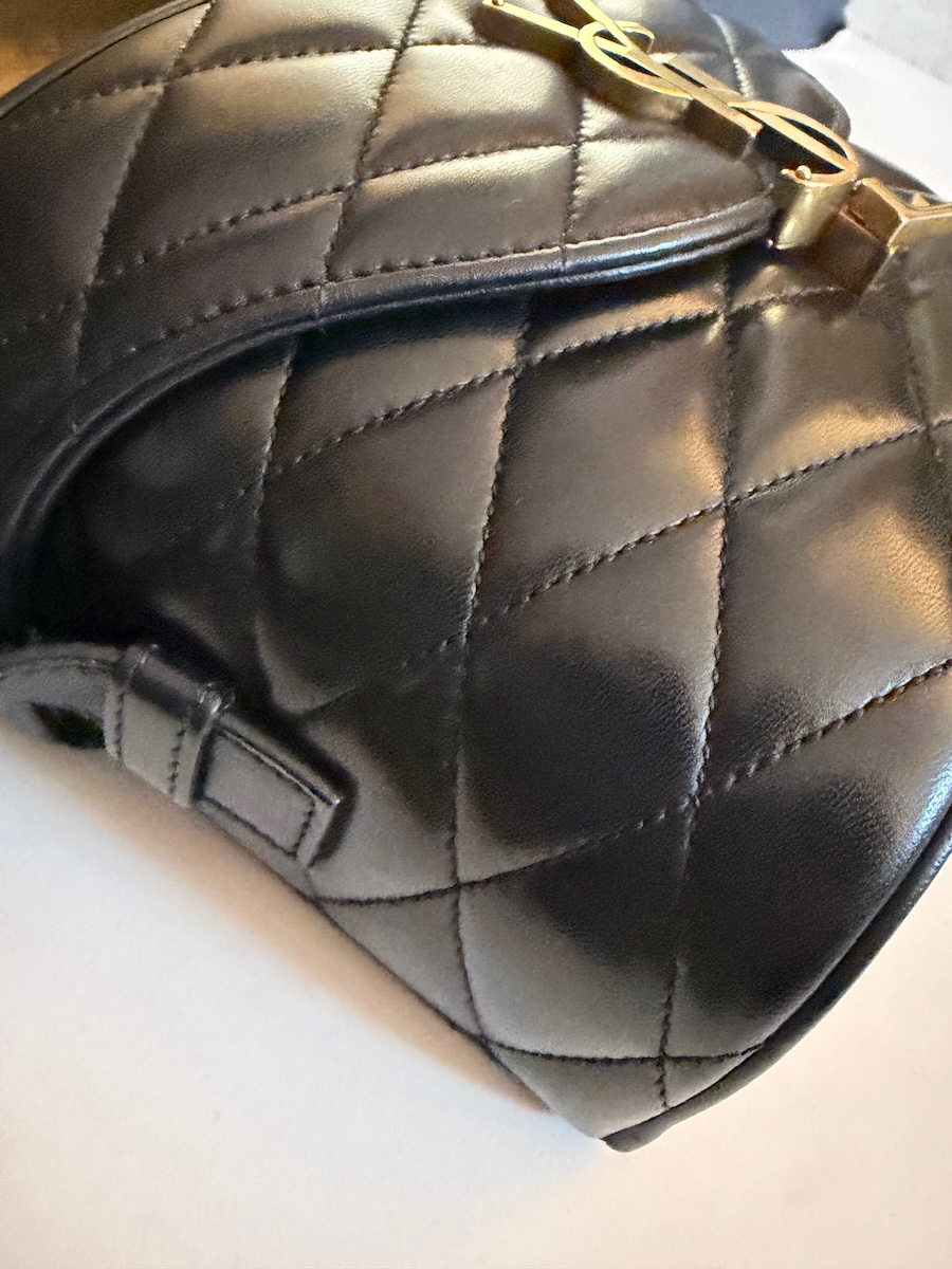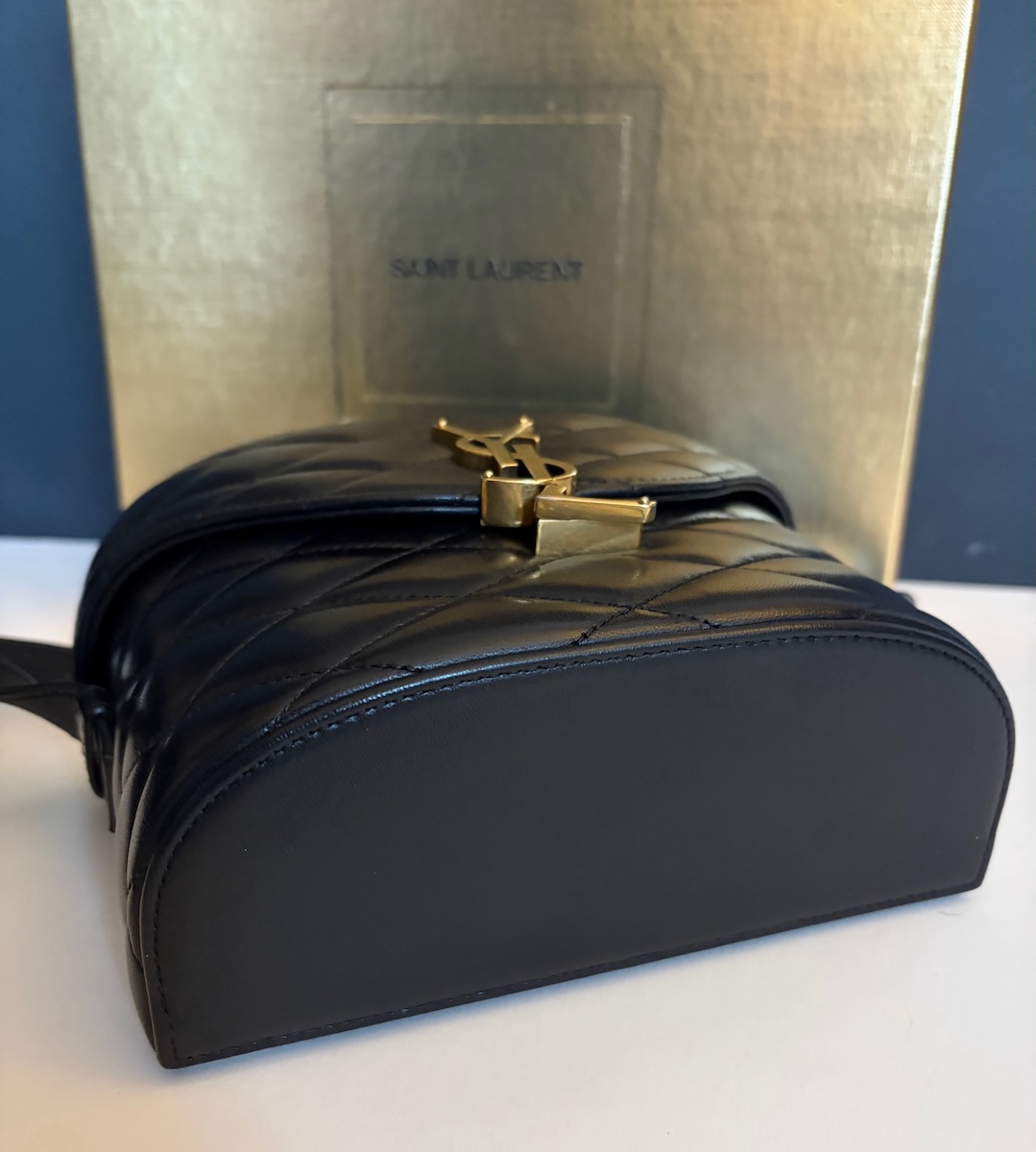 SAINT LAURENT YSL Gold Logo June Box Black Bag Diamond Quilted Lambskin W/Box