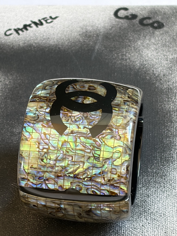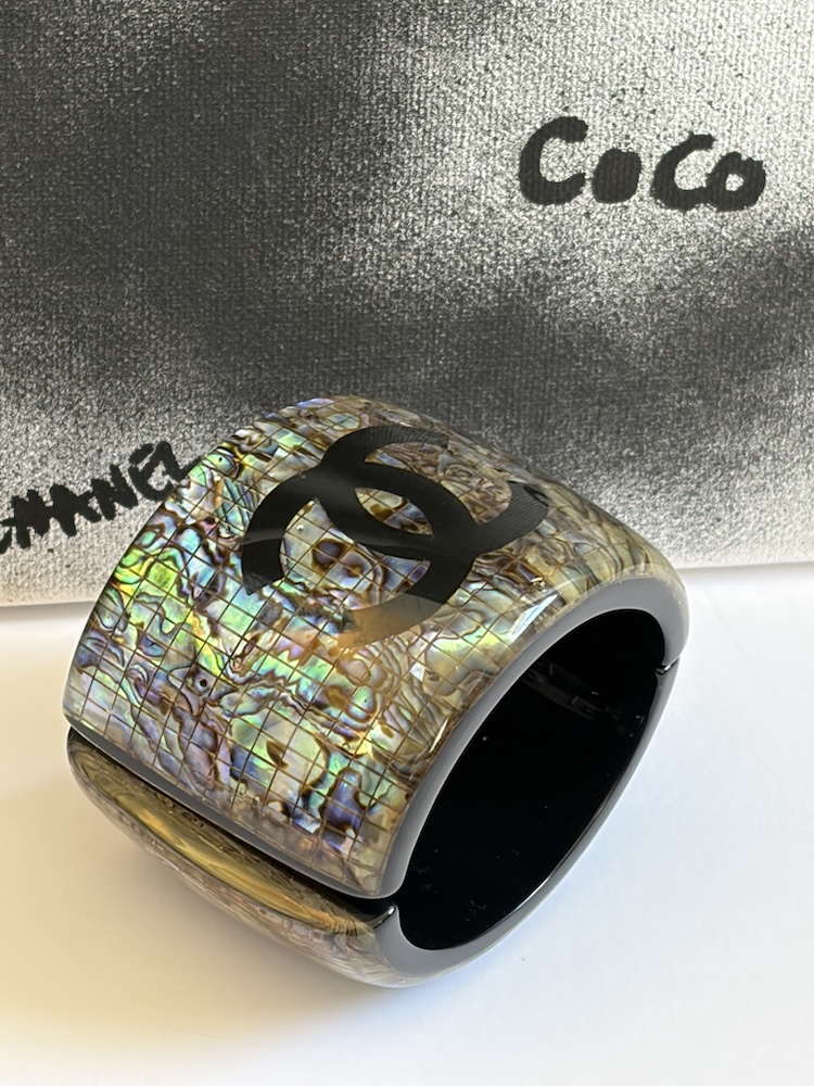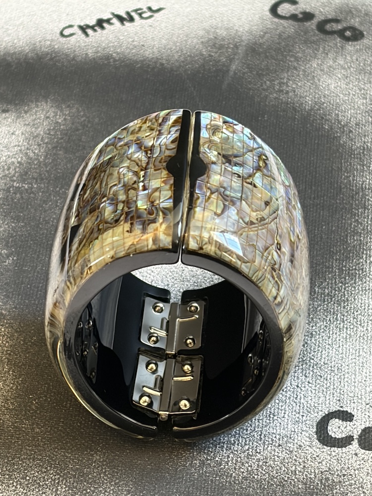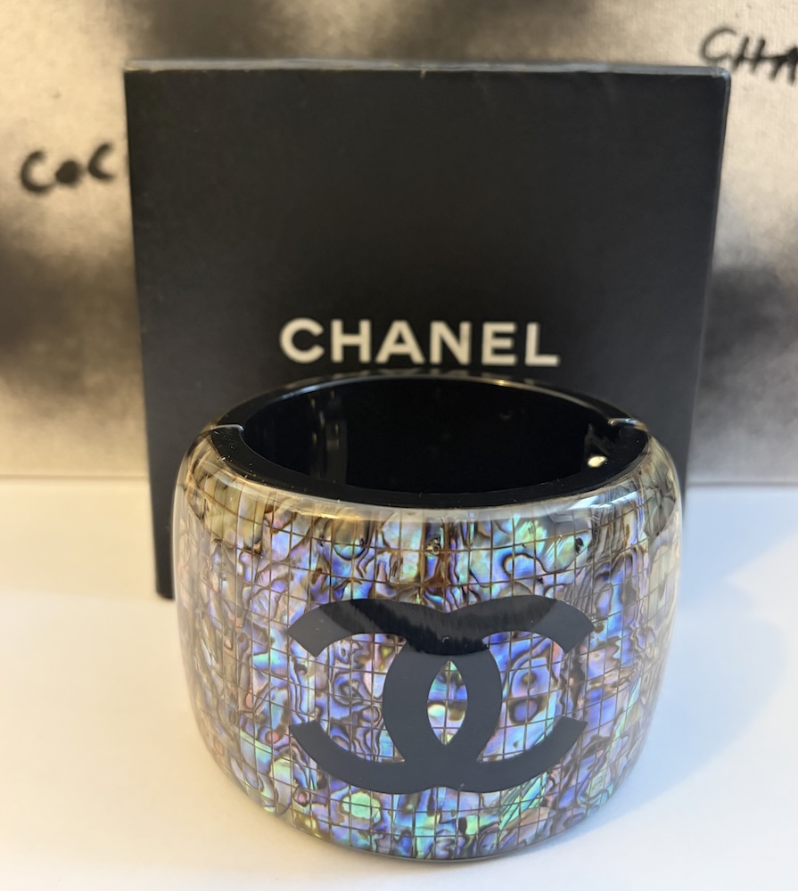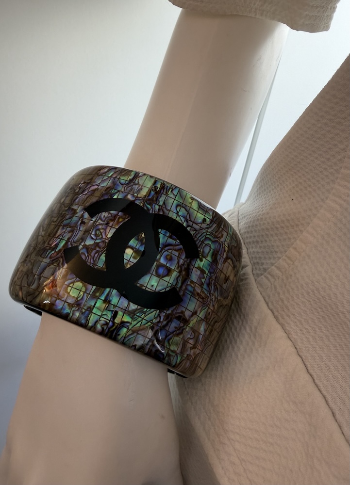 Spring 2012 CHANEL CC Logo Large Iridescent Resin Cuff Bangle Bracelet W/Box